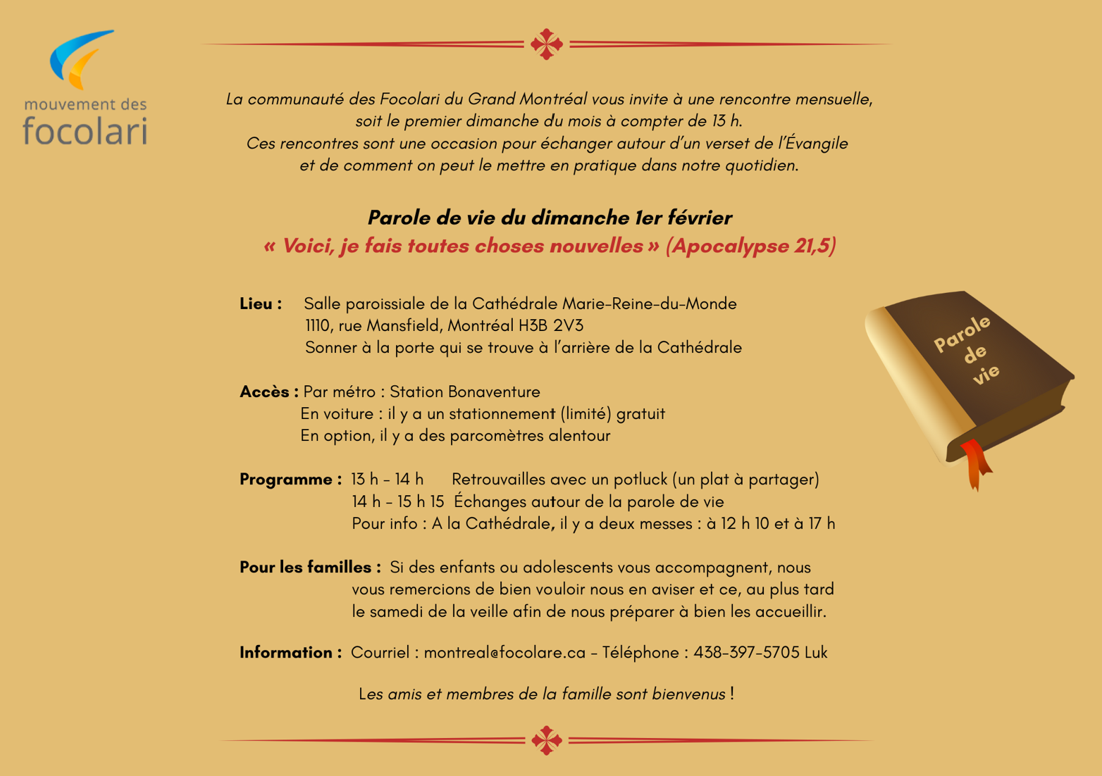 À 14 H : Échanges d'expériences de vie de la Parole de Dieu - Focolari