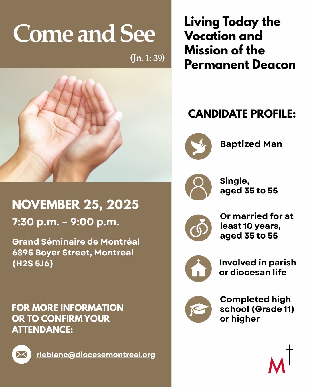 For more information or to confirm your attendance: rleblanc@diocesemontreal.org
