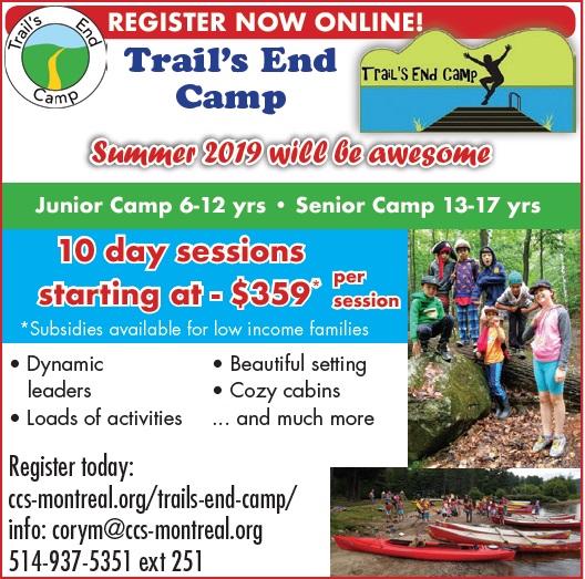 Register Today at www.ccs-montreal.org/trails-end-camp/