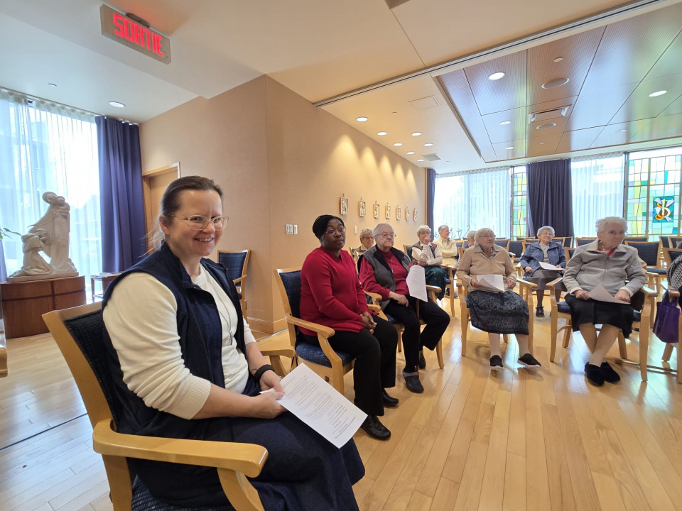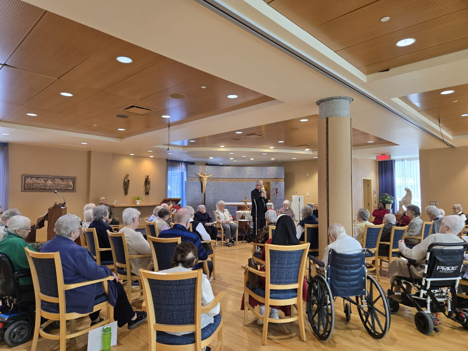 Le vendredi 6 février, Mgr Christian Lépine a visité la Résidence Bon-Secours à Notre-Dame-de-Grâce, accompagné des responsables de l’Office de la vie consacrée. Après avoir salué les sœurs à l’infirmerie et signé le livre d’or de la résidence, il a rencontré une soixantaine de religieuses pour partager des nouvelles encourageantes, notamment le retour discret mais réel de jeunes vers l’Église, qu’il a associé aux fruits des prières et des missions passées. La visite s’est poursuivie par une messe célébrée avec la communauté, suivie d’un repas festif au cours duquel l’archevêque a pris le temps de passer à chaque table pour échanger quelques mots avec les sœurs.