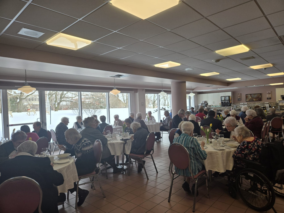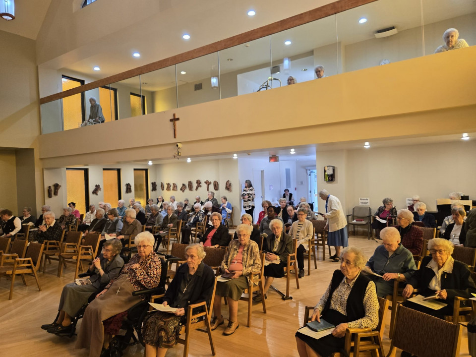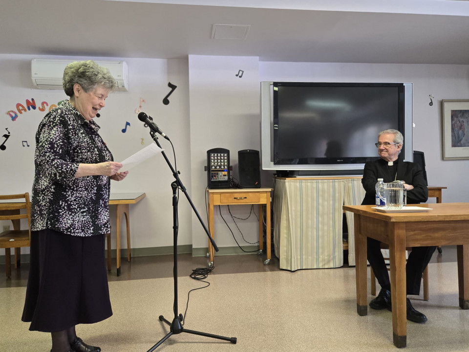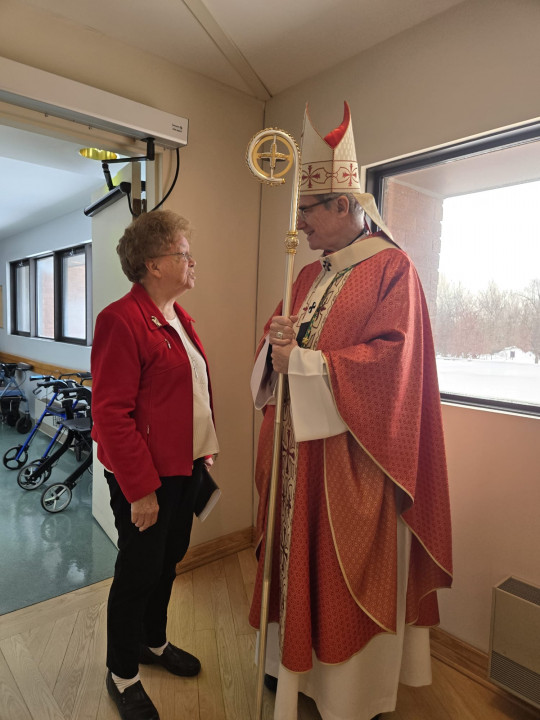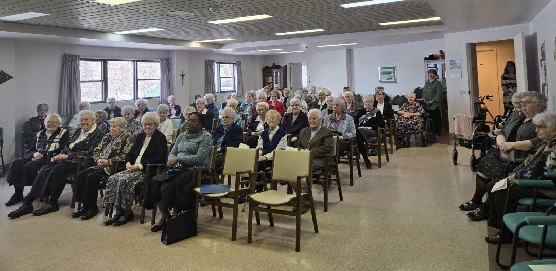 Le vendredi 6 février, Mgr Christian Lépine a visité la Résidence Bon-Secours à Notre-Dame-de-Grâce, accompagné des responsables de l’Office de la vie consacrée. Après avoir salué les sœurs à l’infirmerie et signé le livre d’or de la résidence, il a rencontré une soixantaine de religieuses pour partager des nouvelles encourageantes, notamment le retour discret mais réel de jeunes vers l’Église, qu’il a associé aux fruits des prières et des missions passées. La visite s’est poursuivie par une messe célébrée avec la communauté, suivie d’un repas festif au cours duquel l’archevêque a pris le temps de passer à chaque table pour échanger quelques mots avec les sœurs.