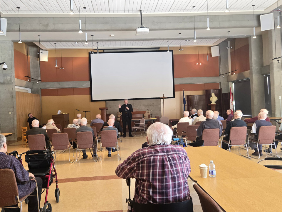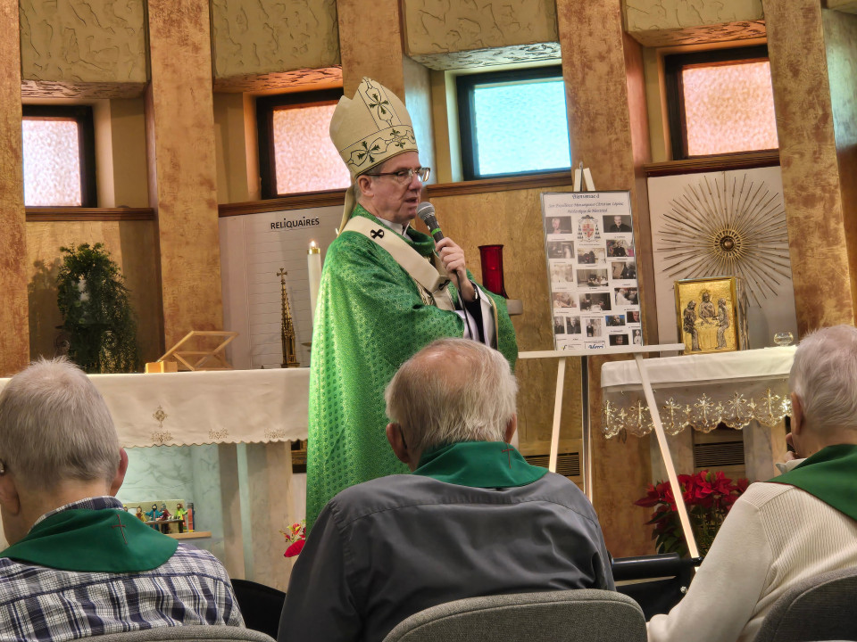 Le dimanche 15 février, Mgr Christian Lépine a visité la Résidence De-La-Salle, où la journée a débuté par une célébration eucharistique présidée par l’archevêque et animée par de beaux chants. Dans son homélie, il a rappelé que la vie consacrée est un don total à Dieu et un témoignage vivant de foi et d’engagement aux valeurs chrétiennes. La rencontre s’est poursuivie par des témoignages inspirants de frères sur leur parcours et leurs missions, ainsi que par un moment d’échange fraternel. La visite s’est conclue par un dîner festif, célébré dans un esprit de fraternité et de reconnaissance pour la mission des personnes consacrées.