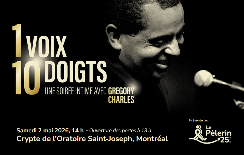 À l’occasion du 25e anniversaire du Centre le Pèlerin et de ses 35 ans de carrière, Gregory Charles présentera son spectacle Une voix, dix doigts le 2 mai 2026 à 14h, à la crypte de l’Oratoire Saint-Joseph. Un après-midi unique alliant musique, récits et émotion.